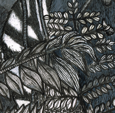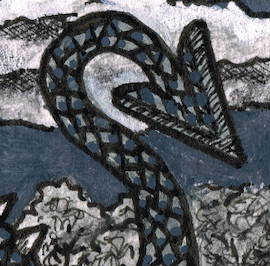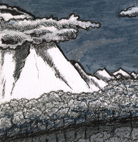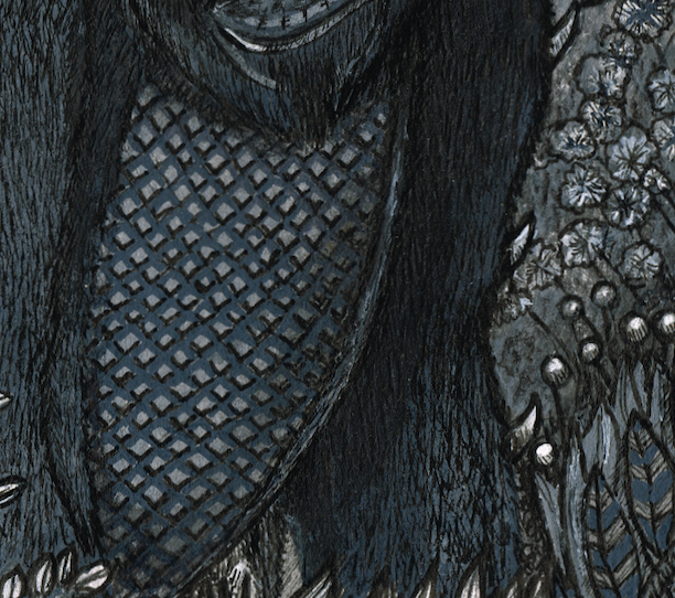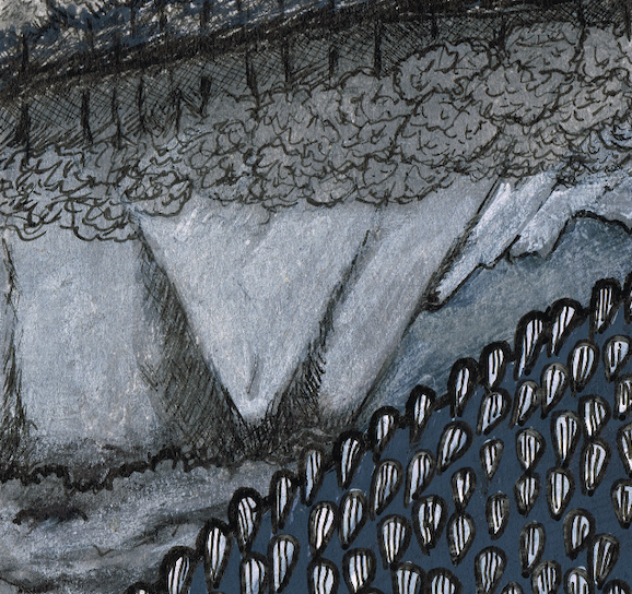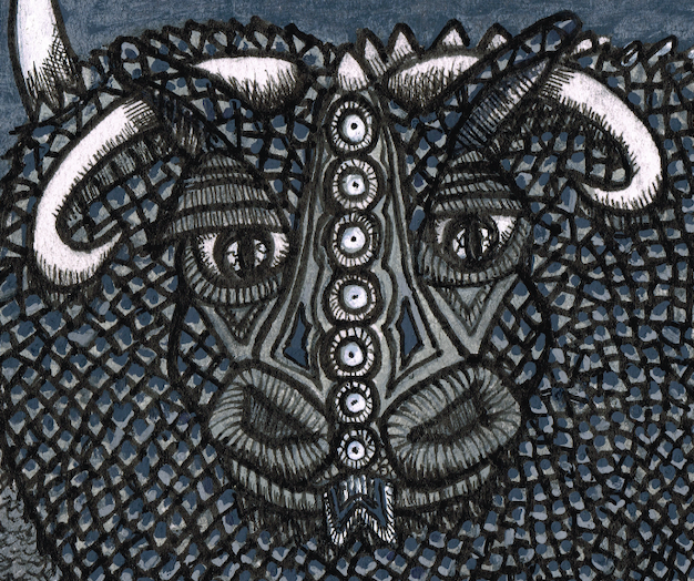 "A Doragon-Buru Grazing In The Mountain Pastures" Dessin original : 21,8 cm x 14 cm - 2024 Peinture acrylique, poscas sur papier et palette digitale Collection privée de l'artiste Une seule...
