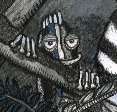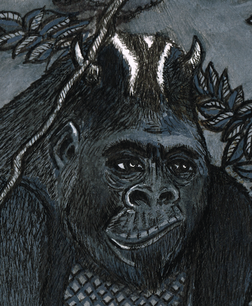 "Fear King Kong" Dessin original : 20 cm x 29,8 cm - 2025 Peinture acrylique, poscas et feutres sur papier. Collection privée de l'artiste